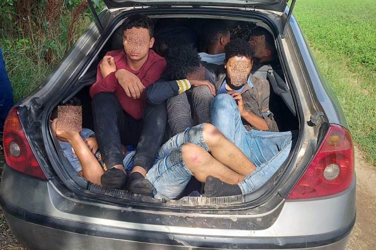 A járőrök – a Nemzeti Nyomozó Iroda Nemzetközi Bűnözés Elleni Főosztály Székesfehérvári Osztály munkatársainak információi alapján - Pereszteg külterületén állítottak meg egy személygépkocsit, amelyben tizennégy migránst akart a sofőr illegálisan Ausztriába juttatni.