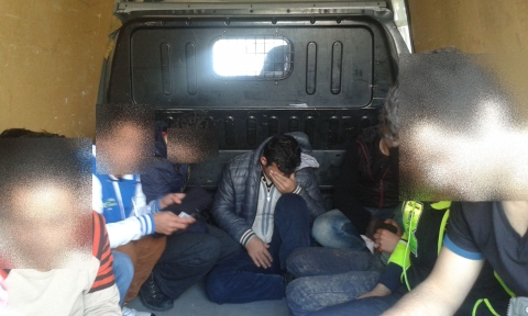 A mosonmagyaróvári határrendészek 2015. március 26-án 14 óra 30 perckor az M1-es autópályán a hegyeshalmi kilépőnél ellenőrizték a magyar forgalmi rendszámú Ford kistehergépkocsit és annak vezetőjét. Az intézkedők a jármű rakterébe zsúfolva öt szír, négy afgán és három iraki állampolgárt találtak. Az igazoltatás során megállapították, hogy a külföldiek menekültügyi eljárás alatt állnak és a továbbutazáshoz szükséges feltételekkel nem rendelkeznek. Érvényes úti okmányok és vízum nélkül akartak Ausztriába utazni. A migránsokat tiltott határátlépés szabálysértés kísérlete miatt előállították.