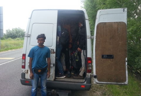 A Csongrád Megyei Rendőr-főkapitányság Migrációs Ügyek Osztálya embercsempészés bűntettének megalapozott gyanúja miatt vett őrizetbe egy 32 éves pakisztáni férfit. A gyanúsított 2015. június 17-én a délutáni órákban Röszke külterületén 42 határsértőt (20 afgán, 9 szír, 12 pakisztáni, 1 iraki) vett fel Mercedes Sprinterjébe. A Szegedi Határrendészeti Kirendeltség járőrei útban Budapest felé állították meg. A rendőrség kezdeményezte a sofőr előzetes letartóztatását.