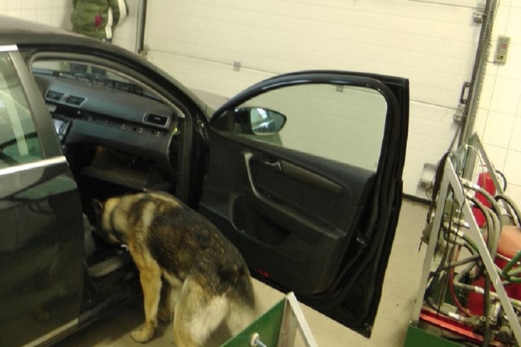 A kutyavezető az autóban elrejtve csaknem egy kilogramm kábítószergyanús anyagot talált. A csomagból vett mintán a gyorsteszt heroinra pozitív eredményt mutatott.