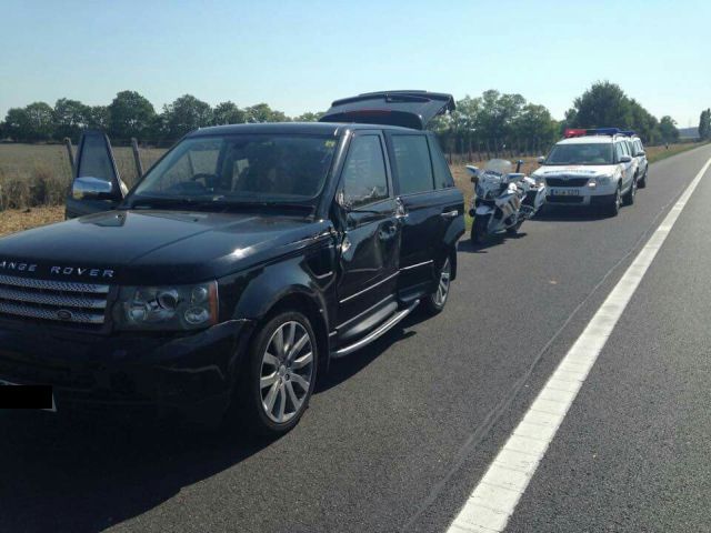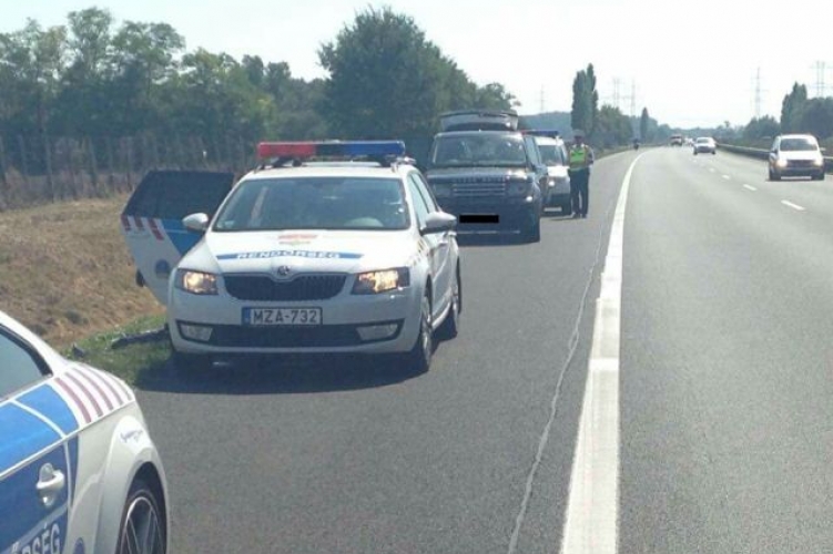 Szintén az M1-es autópályán ellenőriztek a forgalomellenőrző járőrök 2 fő szír állampolgárt. A külföldiek egy angol hatósági jelzésű terepjáróval utaztak Ausztria irányába. A jármű vezetője a rendőrök megkülönböztető jelzését figyelmen kívül hagyta és a leállósávon közlekedett, majd 11 óra 45 perckor a 156-os kilométerszelvényben egy tehergépkocsi oldalának ütközött. A gépkocsivezető az autót és utasait hátrahagyva a helyszínről elmenekült. A balesetben személyi sérülés nem történt.