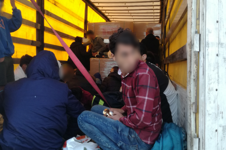Illegális migránsok egy török kamion rakterében