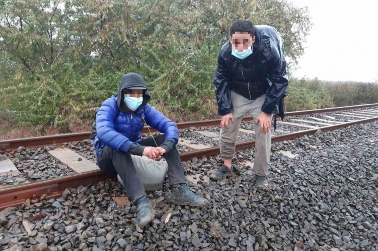 Jogellenesen próbált meg bejutni az országba két határsértő Csongrád-Csanád megyében. A rendőrök feltartóztatták, majd az ideiglenes biztonsági határzárhoz kísérik őket.