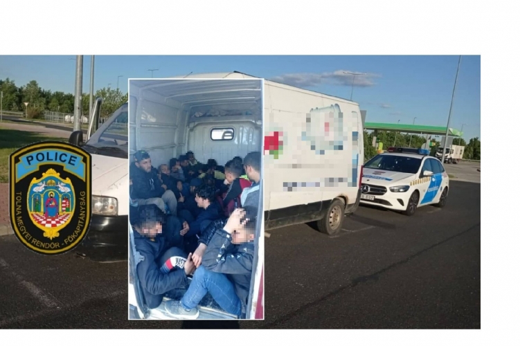 A Tolna megyei rendőrök a NAV munkatársainak együttműködésével az M6-os autópályán fogták el a két román férfit és a csaknem két tucat, magukat szír állampolgárnak valló külföldit.