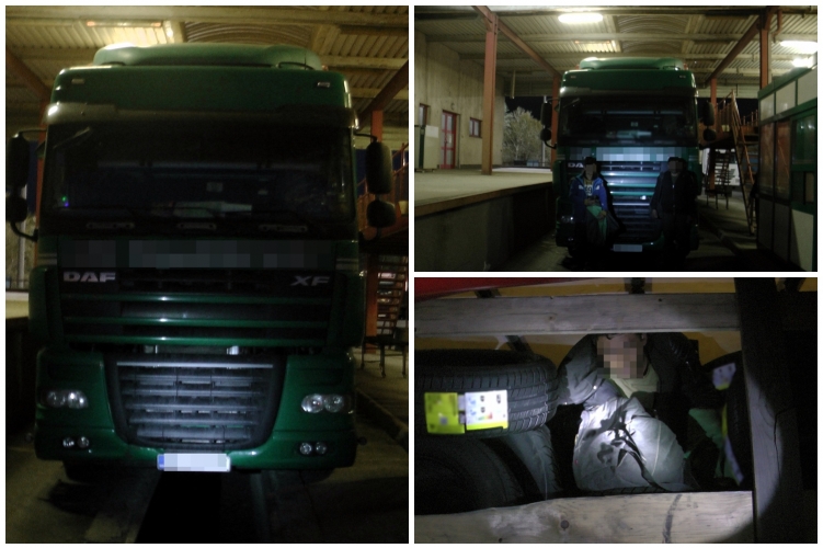 Az illegális migránsokat egy kamion rakterében találták meg. A rendőrök visszakísérték őket az ideiglenes biztonsági határzárhoz.