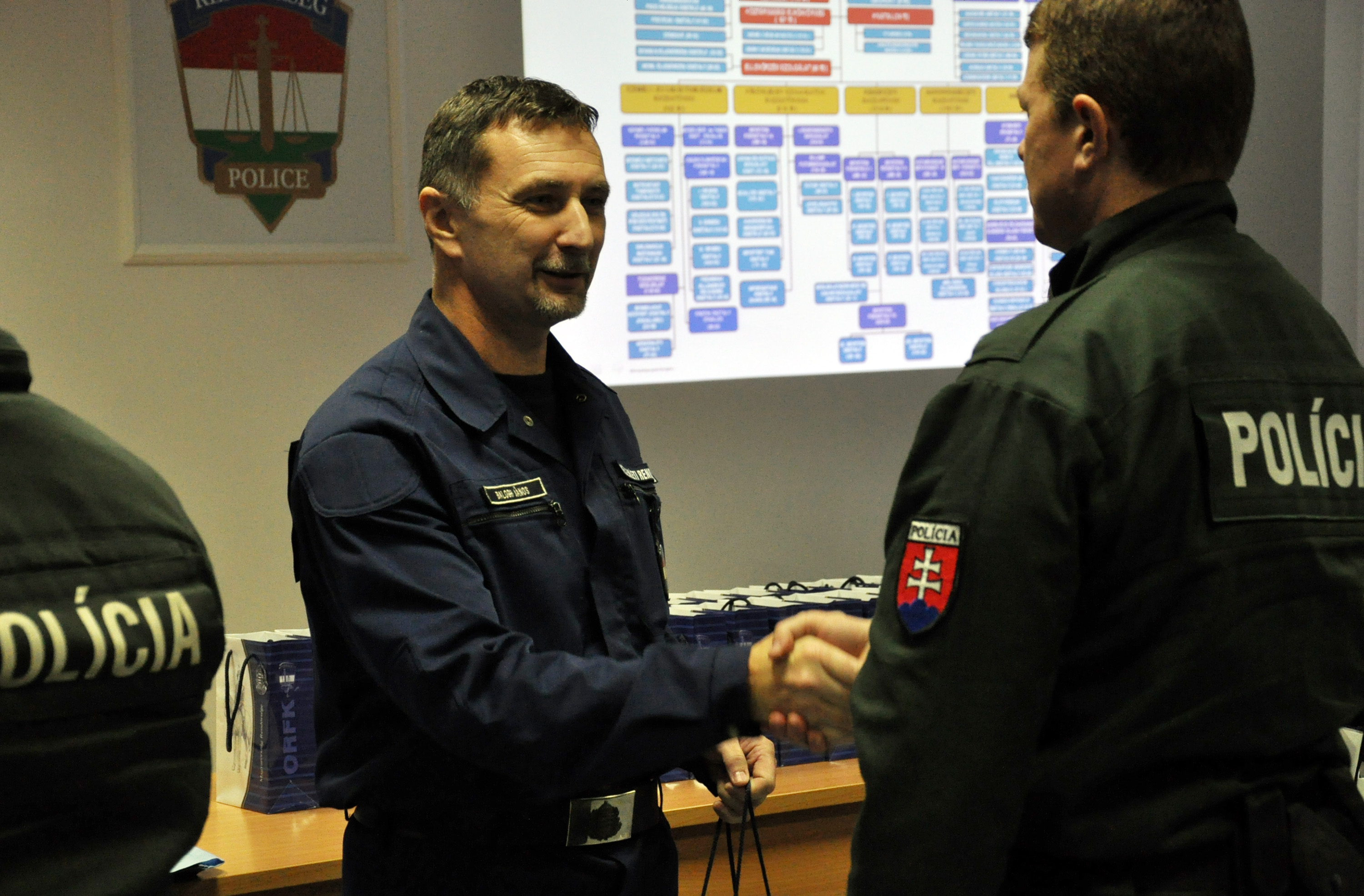 Pol. Major General Dr. János Balogh, Commander of the Rapid Response Police Unit thanked the Slovak contingent of 50 police officers for their patrol service carried out at the Hungarian-Serbian border section jointly with the staff of the Rapid Response Police Unit and the Hungarian Defence Forces as of 21 October 2015. Under the aegis of the event, he also welcomed the Slovak colleagues arrived to replace the leaving contingent.