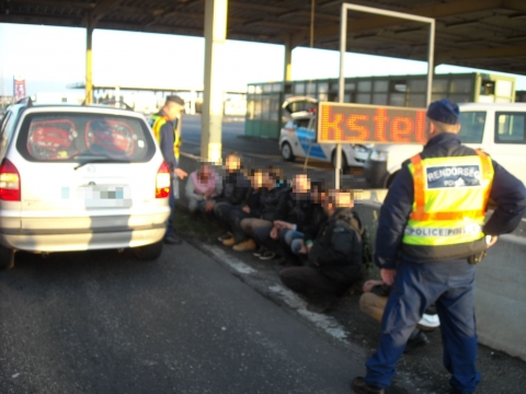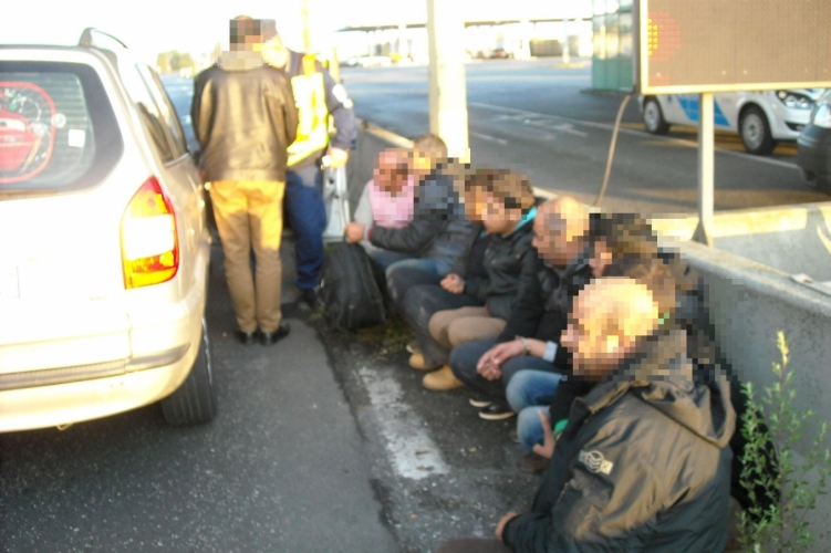 A mosonmagyaróvári határrendészek és az osztrák rendőrök az M1-es autópálya hegyeshalmi kilépőjénél 2014. október 18-án 7 óra 45 perckor idegenrendészeti ellenőrzésen állították meg a francia honosságú Opel Zafíra gépkocsit. A járművet egy 54 éves Portugáliában élő pakisztáni férfi vezette, nyolc külföldi utasa a személyazonosságát és magyarországi tartózkodásuk jogszerűségét igazolni nem tudta. A szíriai férfiak az intézkedőknek elmondták, Macedóniából Szerbián keresztül gépkocsival szállították őket a határig, onnan hatórás gyaloglás után illegálisan jutottak hazánkba. A pakisztáni sofőr egy erdei úton vette fel autójába a menekülteket, hogy Ausztriába utaztassa őket. A szíriai állampolgárokat tiltott határátlépés szabálysértés kísérlete miatt a rendőrök előállították. A külföldieknek segítséget nyújtó pakisztáni gépkocsivezető ellen a Győr-Moson-Sopron Megyei Rendőr-főkapitányság embercsempészés bűntett elkövetésének megalapozott gyanúja miatt folytatja az eljárást.