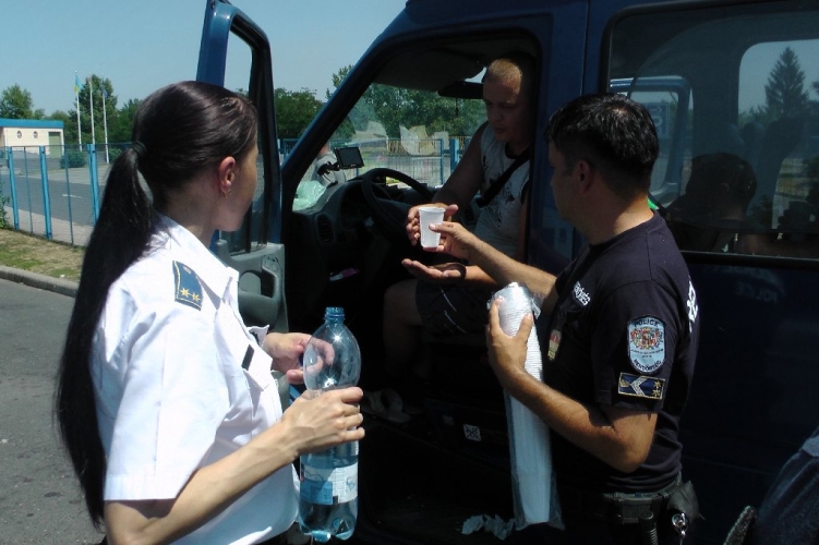 A záhonyi határátkelőnél várakozóknak jól esik a hűsítő segítség.
