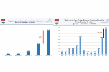 A szolgálatot teljesítő rendőrök 2022. november 15-én 0 óra és 24 óra közötti időszakban összesen 460 határsértőt tartóztattak fel és 243 főt megakadályoztak a hazánk területére történő illegális belépésben.
