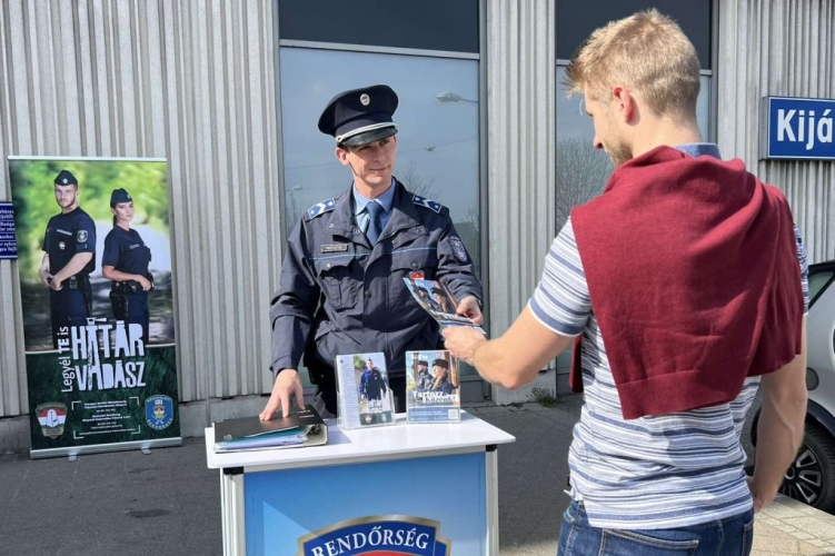 A Marcali Rendőrkapitányság munkatársai a postahivatalnál toboroztak a Készenléti Rendőrség Határvadász Ezredébe.