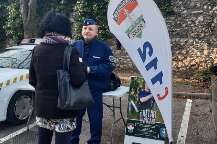 A Fonyódi Rendőrkapitányság munkatársai egy helyi áruháznál toboroztak a Készenléti Rendőrség Határvadász Ezredébe.