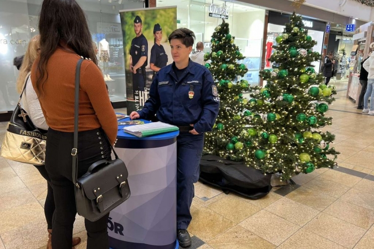 A Siófoki Rendőrkapitányság munkatársai egy helyi bevásárlóközpontnál toboroztak a Készenléti Rendőrség Határvadász Ezredébe.