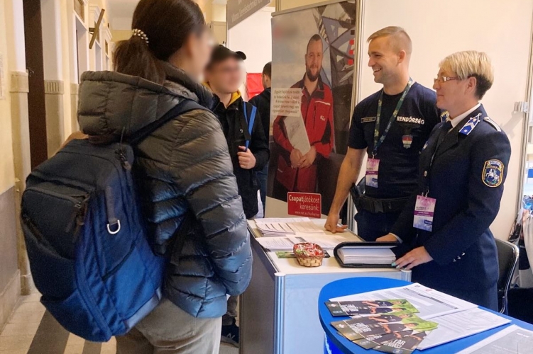 A rendőrök a jelentkezés feltételeiről, a felvételi eljárásról és a leendő feladatokról is tájékoztatták az érdeklődőket.