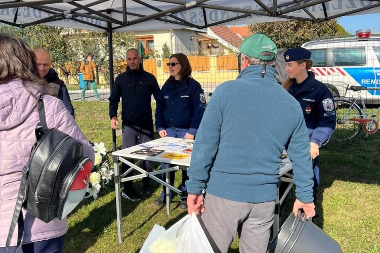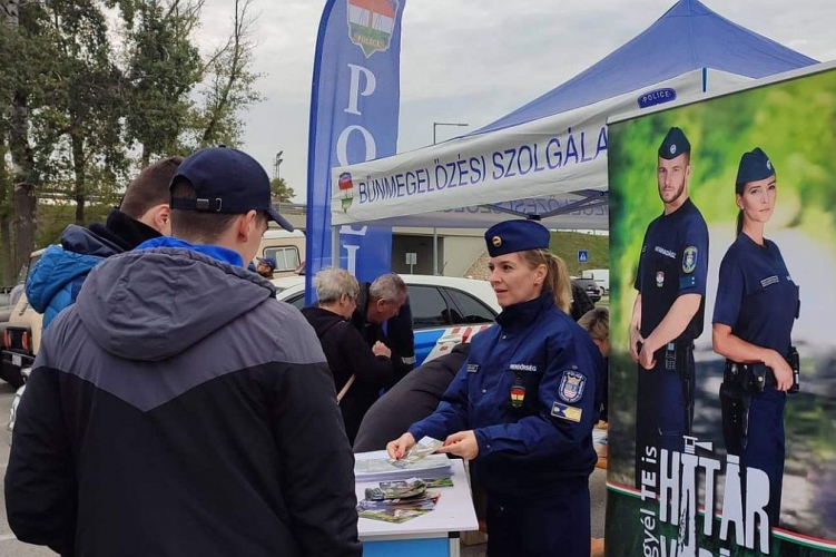 A Győr-Moson-Sopron Megyei Rendőr-főkapitányság toborzó csoportjának tagjai Győrben, a Pesti út környékén megrendezett veterán autók börzéjén várták a határvadász hivatás iránt érdeklődőket.