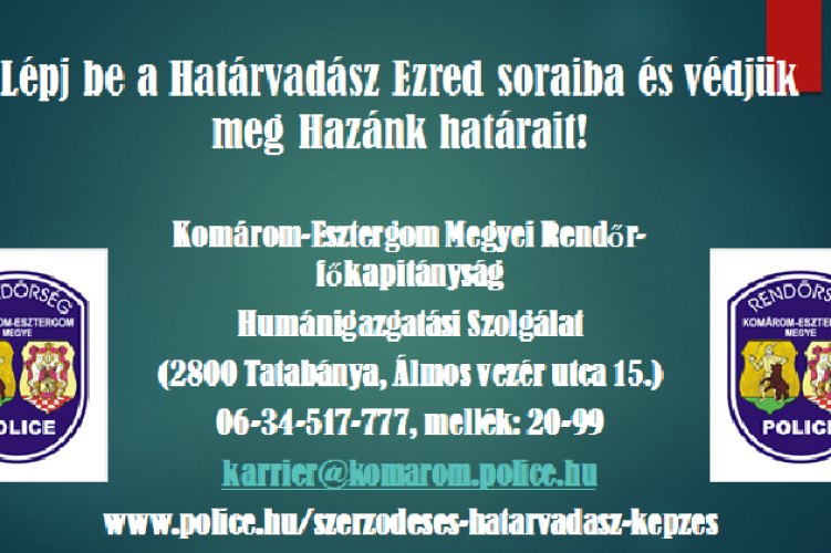 Folyamatos a határvadász toborzás Komárom-Esztergom megyében.