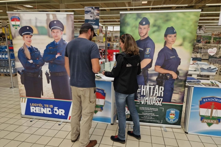 A fővárosi rendőrök szerdán is toborozták a X. kerületben a leendő határvadászokat.