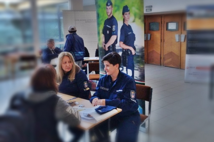 A pályaválasztás előtt álló diákokat és a felnőtteket is egyaránt várta toborzó standjánál a Veszprémi Rendőrkapitányság.