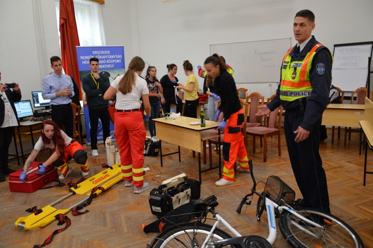 Egy realisztikus baleseti helyszínen „segítettünk” jó tanácsokkal, míg toborzó munkatársunk tájékoztatást adott a határvadásznak történő jelentkezés feltételeiről.