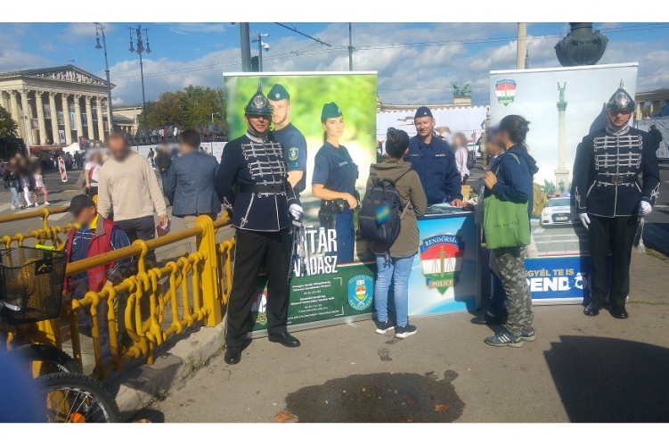 A fővárosi rendőrök vasárnap is toborozták a Hősök terén a leendő határvadászokat.