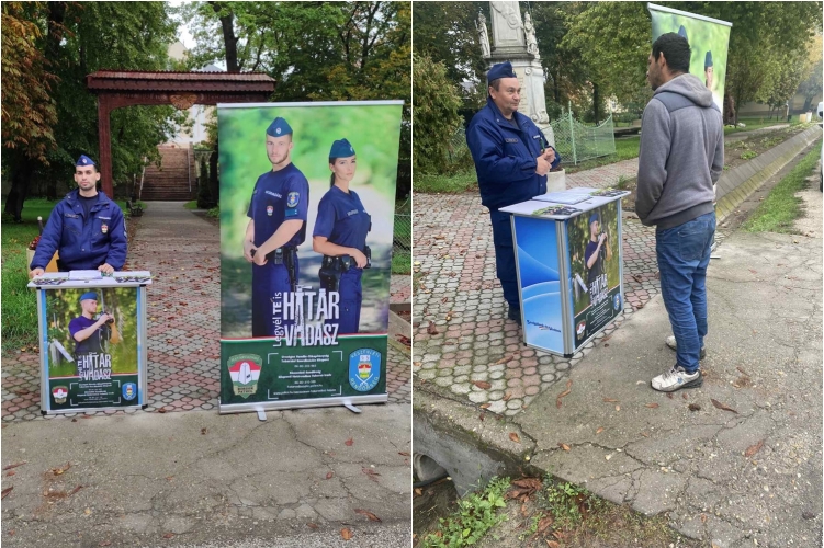 Az Esztergomi Rendőrkapitányság egyenruhásai szórólapot osztottak és szóban tájékoztattak a szerződéses határvadász szolgálattal kapcsolatban.