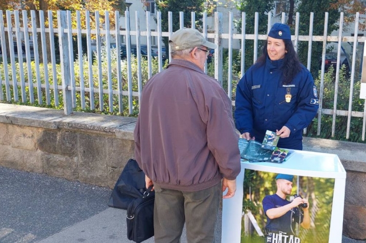 Az egyenruhások a Készenléti Rendőrség Határvadász Ezredébe történő jelentkezés feltételeiről, a felvételi eljárás menetéről és a határvadászokra váró feladatokról tájékoztatják az érdeklődőket.
