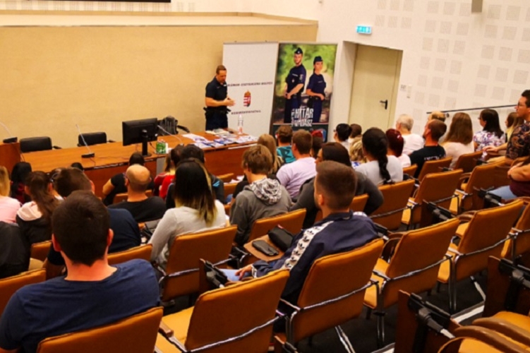 A Komárom-Esztergom Megyei Rendőr-főkapitányság toborzó csoportjának tagja részletes tájékoztatást adott a szerződéses határvadász hivatás iránt érdeklődők részére.