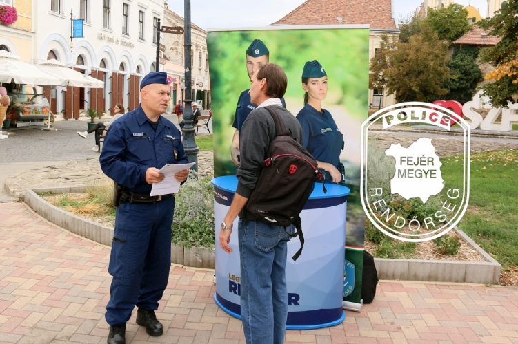 A Fejér Megyei Rendőr-főkapitányság munkatársai hetente több alkalommal népszerűsítik a Belvárosban a határvadász szolgálatot.