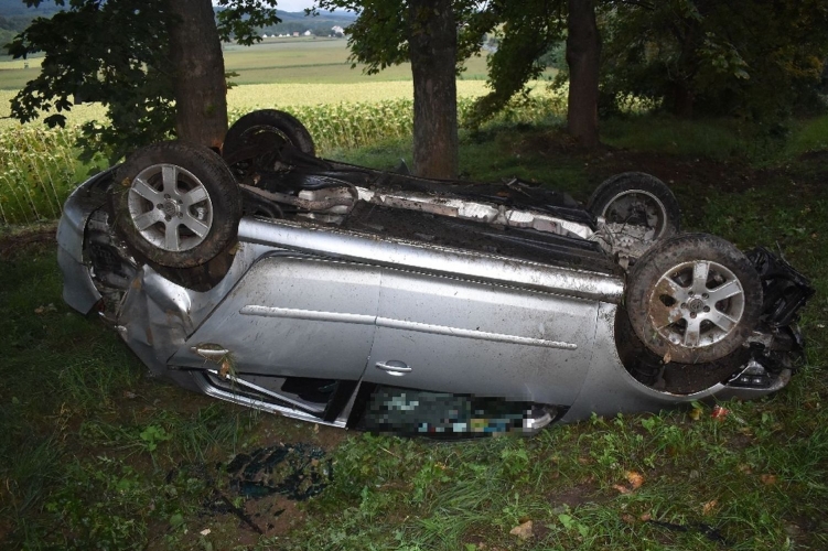 Személygépkocsival haladt ugyanezen a napon 18 óra körül egy 23 éves férfi a 22-es számú főúton a rétsági körforgalom irányából Érsekvadkert felé, amikor egy kanyarban a nedves úttesten a járművel megcsúszott, és a vízelvezető árokba lehaladt, ahol terelőtábláknak ütközött, majd a tetejére borult. A balesetben a jármű vezetője és egy utasa megsérült.