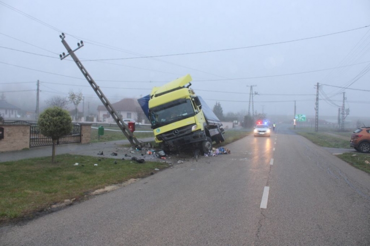 Kóny belterületén az Új Élet utcában, a Mátyás Király utca felől a Széchenyi utca irányába közlekedett egy férfi tehergépkocsival 2022. november 21-én 6 óra 30 perckor. Haladása során - feltehetőleg ittassága miatt – sebességét nem az útviszonyoknak megfelelően választotta meg, letért a menetiránya szerinti jobb oldalra, az ott található beton villanyoszlopnak ütközött, majd a vízelvezető árokban, oldalára borulva került nyugalmi helyzetbe. A baleset során a sofőr megsérült, őt a mentők kórházba szállították.
