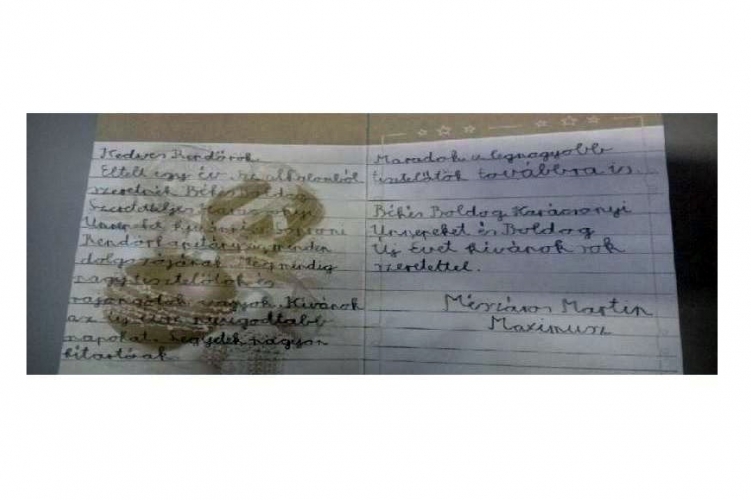 A Soproni Rendőrkapitányság rendőreit köszönti több éve már karácsonykor egy soproni kisfiú, ez évben sem felejtette el jókívánságait papírra vetni.