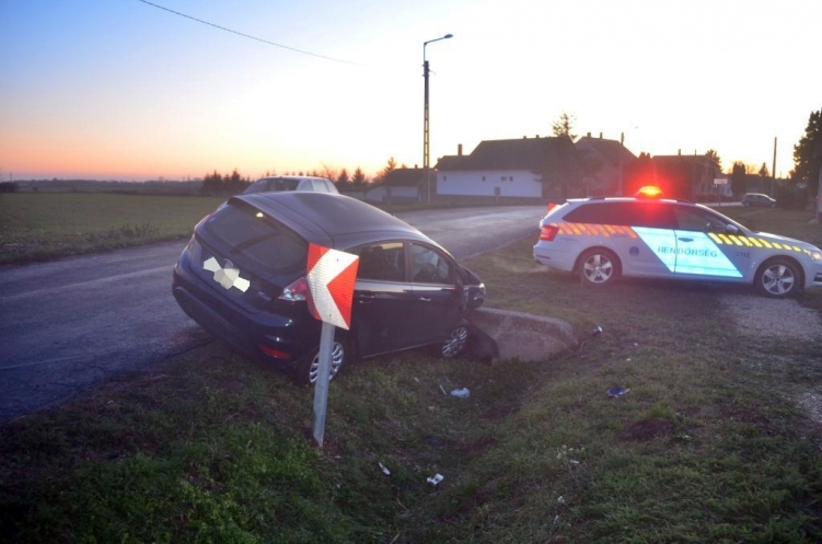 Egy 68 éves szombathelyi nő közlekedett személygépkocsival Lövő felől, Völcsej irányába. Haladása során egy balra ívelő kanyarból kihajtva, a sofőrt a lenyugvó nap elvakította, amelynek következtében az úttestről letérve egy vízelvezető árokba hajtott, majd egy betonáteresznek ütközött. A baleset során a sofőr és két utasa megsérült, őket a mentők kórházba vitték.