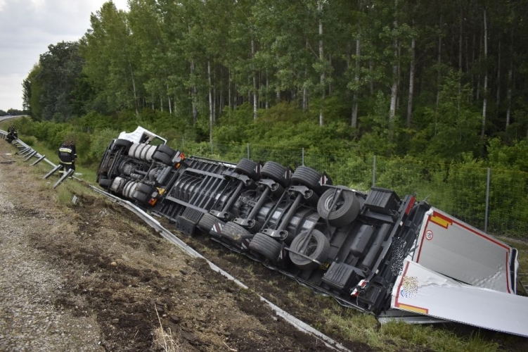 Az M85-ös autóúton az M1-es autópálya felől Csorna irányába közlekedett egy 43 éves férfi vontatós járműszerelvényével 2022. június 7-én 19 óra körüli időben. Haladása során – figyelmetlenségéből adódóan – az útmenti szalagkorlátnak ütközött, azt átszakította és végül az árokba borulva állt meg. A baleset során a sofőr megsérült, őt a mentők kórházba vitték.