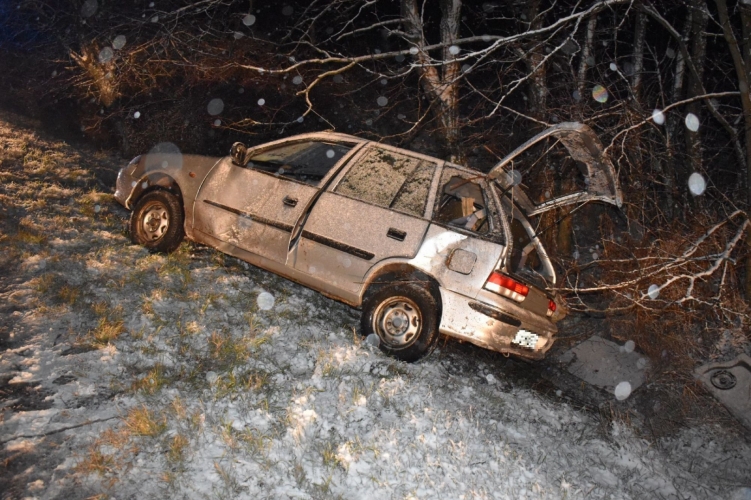 Ugyanezen a napon 16 óra 45 perc körül a 22-es számú főúton, Érsekvadkert irányából Rétság felé haladt egy 82 éves férfi gépkocsival, amikor a járművel a havas úttesten megcsúszott és az út melletti árokba hajtva felborult. A gépkocsi vezetője a balesetben megsérült.