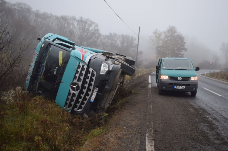 A 22-es számú főúton, Salgótarján irányából Szécsény felé közlekedett egy 25 éves férfi 2020. november 10-én 5 óra 45 perckor egy nyergesvontatóból és a hozzákapcsolt félpótkocsiból álló járműszerelvénnyel, amikor a vizes aszfalton a járművel megcsúszott, majd az árokba sodródott és felborult.