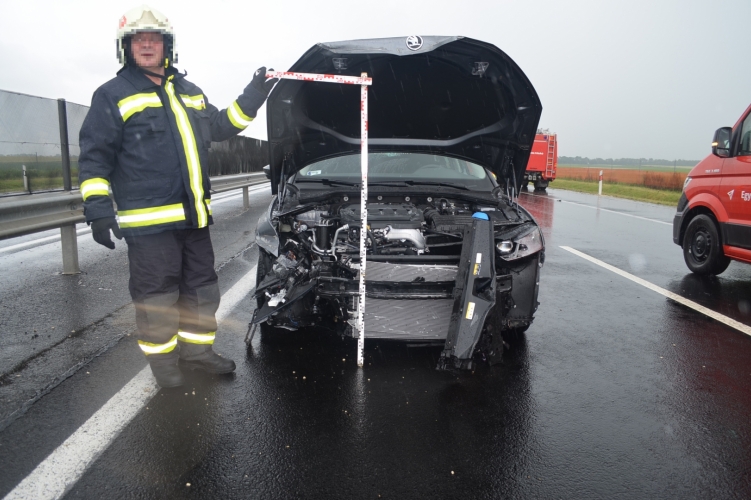 Egy órával később egy férfi közlekedett autóval az M6-os autópálya jobb pályatest külső forgalmi sávjában Pécs felé. Mivel haladási sebességét nem az út és időjárási viszonyoknak megfelelően választotta meg, a 144 –es kilométerszelvényhez érve a vizes úton megcsúszott és az úttest jobb széle mellett található vízelvezető árokba lehajtott, ahol több növénynek is nekiütközött.
