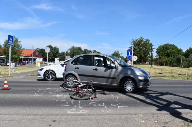Hárman sérültek meg közlekedési balesetben, köztük egy kerékpáros gyermek is, aki személygépkocsival ütközött Békéscsabán.