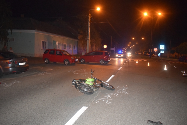 Orosházán, a Könd utca és a Táncsics utca kereszteződésében 2022. november 2-án 16 óra után néhány perccel egy személyautó vezetője nem adott elsőbbséget egy segédmotor-kerékpárral közlekedő férfinak és nekiütközött. A mentők a férfit könnyű sérüléssel vitték kórházba. A baleset okát és körülményeit az Orosházi Rendőrkapitányság vizsgálja.