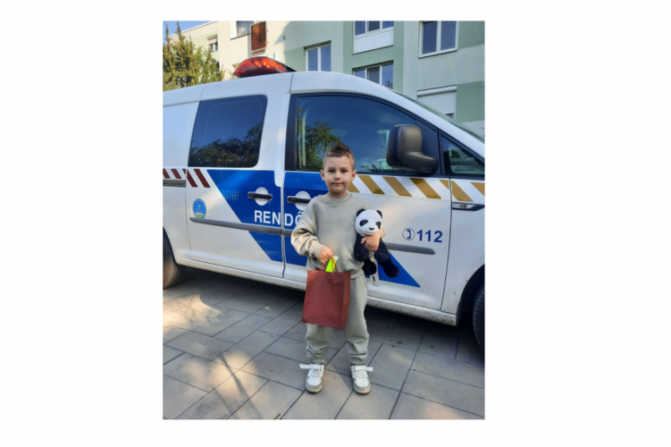 Örömmel tettünk eleget a felkérésnek. Bence 2025. április 30-án kora reggel ámulva nézte a rá várakozó szolgálati autót, amivel kollégáink a Mosonmagyaróvári Vackor Óvodába vitték, majd a meglepetés lezárásaként ajándékcsomagot adtak át a kisfiúnak.