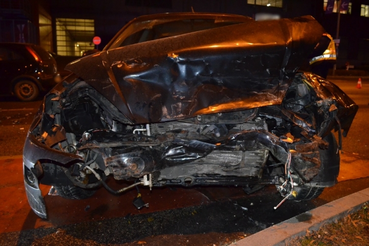 A fenti képen az egyik balesetben összetört autó látható. Két személygépkocsi ütközött össze 2021. január 22-én 18 óra 20 perc körül Budapest XIX. kerületében, a Vak Bottyán utcában. Ebben a balesetben két ember könnyebben megsérült.
