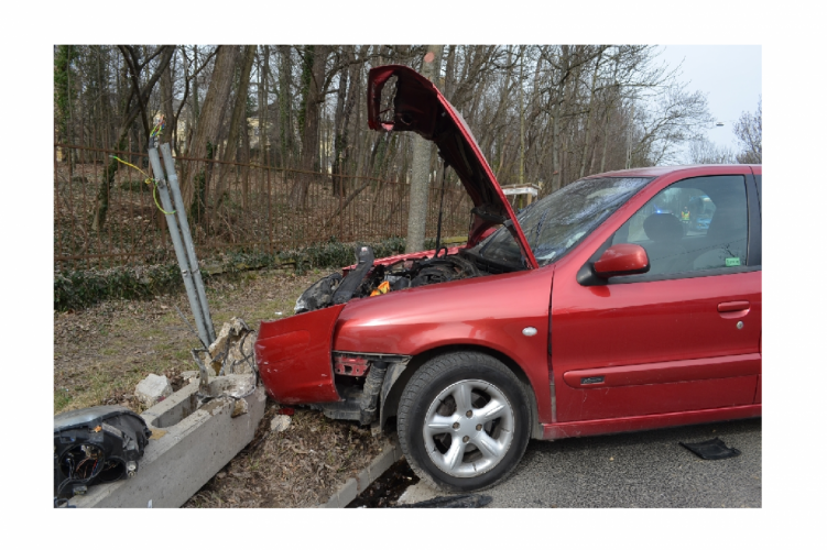 A fenti képen az egyik balesetben összetört autó látható. Eddig tisztázatlan körülmények között, oszlopnak ütközött egy gépkocsi 2021. március 4-én 8 óra 40 perckor Budapest II. kerületében, a Hűvösvölgyi úton. Ebben a balesetben egy ember könnyebben sérült meg.