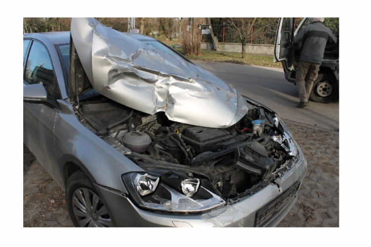 A fenti képen az egyik balesetben összetört autó látható. Eddig tisztázatlan körülmények között, parkoló teherautónak ütközött egy gépkocsi 2021. március 12-én 15 órakor Budapest XIX. kerületében, az Ipolyság utcában. Ebben a balesetben senki sem sérült meg.