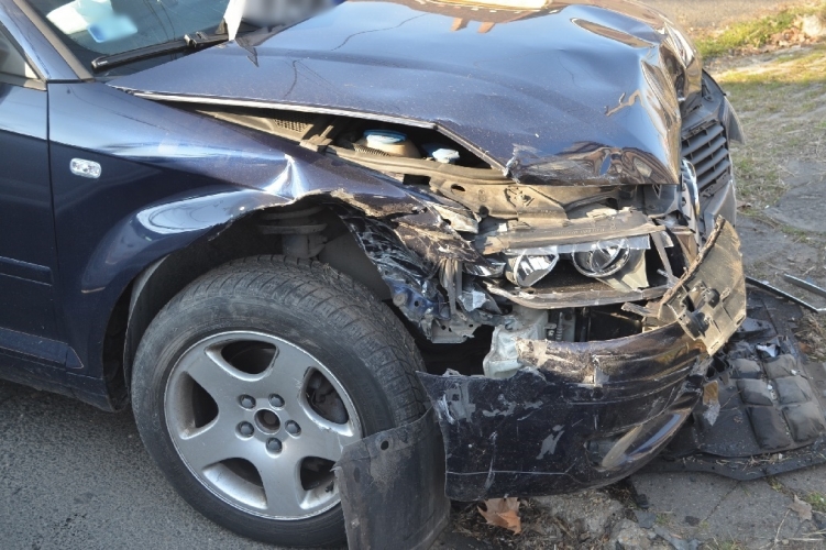 A fenti képen az egyik balesetben összetört autó látható. Két személygépkocsi ütközött össze 2021. március 15-én 14 óra körül Budapest XX. kerületében, a Szent Imre herceg utca és a Dessewffy utca kereszteződésében. Ebben a balesetben két ember könnyebben megsérült.