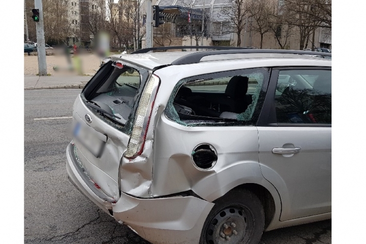 A fenti képen az egyik balesetben összetört autó látható. Egy gépkocsi és egy kamion ütközött össze 2021. március 18-án 8 óra 35 perc körül Budapest XI. kerületében, az Október huszonharmadika utcában. Ebben a balesetben senki nem sérült meg.