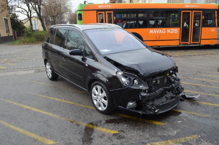 A fenti képen az egyik balesetben összetört autó látható. 2021. március 29-én 9 óra 10 perc körül Budapest XIX. kerületében, az Ady Endre úton három autó ütközött össze. Ebben a balesetben egy ember könnyebben megsérült.