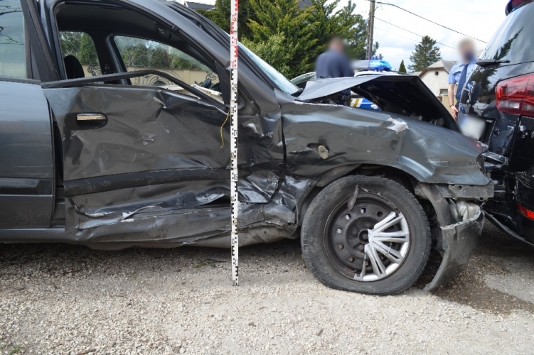 A fenti képen az egyik balesetben összetört két autó látható. Két személygépkocsi ütközött össze 2021. április 12-én 13 óra 35 perc körül Budapest II. kerületében, az Hidegkúti út és a Kölcsey utca kereszteződésében, melynek következtében az egyik jármű egy oszlopnak, illetve egy parkoló autónak is nekiütközött. Ebben a balesetben egy ember súlyosan megsérült.