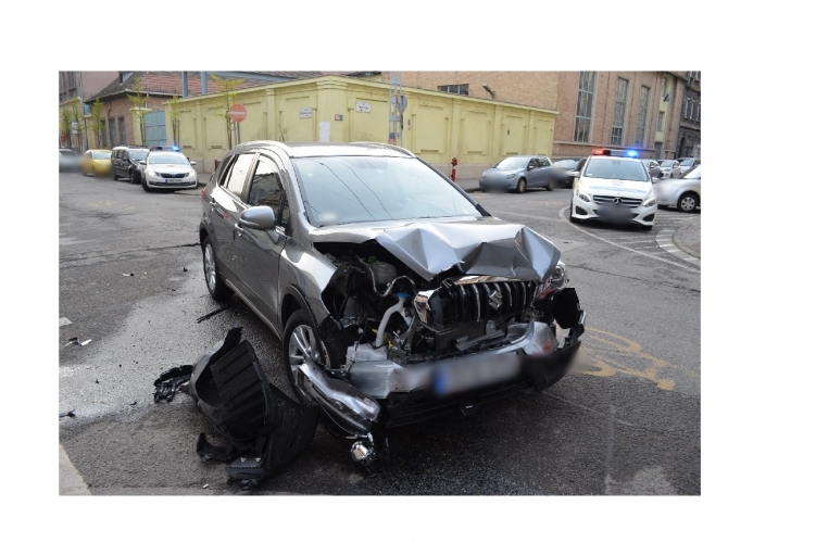 A fenti képen az egyik balesetben összetört autó látható. Öt gépkocsi ütközött össze 2021. április 25-én 6 óra 27 perc körül Budapest VII. kerületében, a Dembinszky utca és a Murányi utca kereszteződésében. Ebben a balesetben egy ember szenvedett könnyű sérülést.
