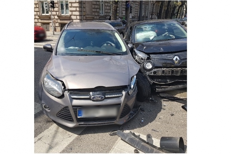 A fenti képen az egyik balesetben összetört két autó látható. Két személygépkocsi ütközött össze 2021. április 27-én 12 óra 30 perc körül Budapest VII. kerületében, a Rottenbiller utca és a Dohány utca kereszteződésében. Ebben a balesetben nem sérült meg senki.
