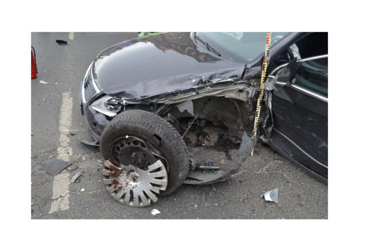 A fenti képen az egyik balesetben összetört autó látható. Eddig tisztázatlan körülmények között ütközött össze két autó 2021. május 6-án 11 óra 10 perckor Budapesten az IX. kerületben, az Üllői úton. Ebben a balesetben két ember sérült meg könnyebben.