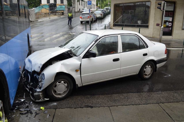 A fenti képen az egyik balesetben összetört járművek láthatóak. Eddig tisztázatlan körülmények között 2021. május 23-án 7 óra 15 perckor egy személygépkocsi Budapest II. kerületében a Margit körúton haladva nekiütközött egy busznak. Ebben a balesetben egy ember könnyebben megsérült.