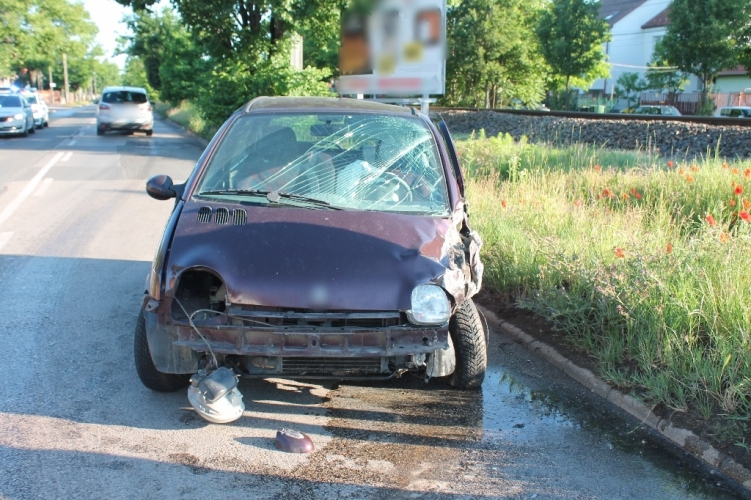 A fenti képen az egyik balesetben összetört egyik jármű látható. Eddig tisztázatlan körülmények között 2021. június 13-án 5 óra 50 perc körül két autó ütközött a Budapest, XVIII. kerületi Nagykőrösi úton. Ebben a balesetben hárman könnyebben megsérültek.